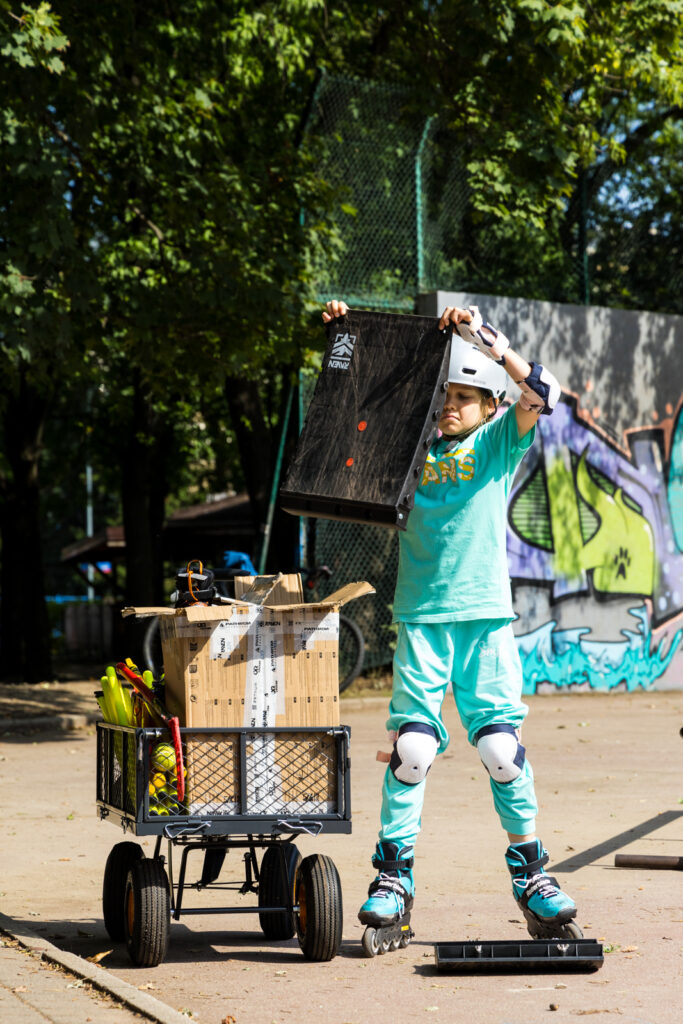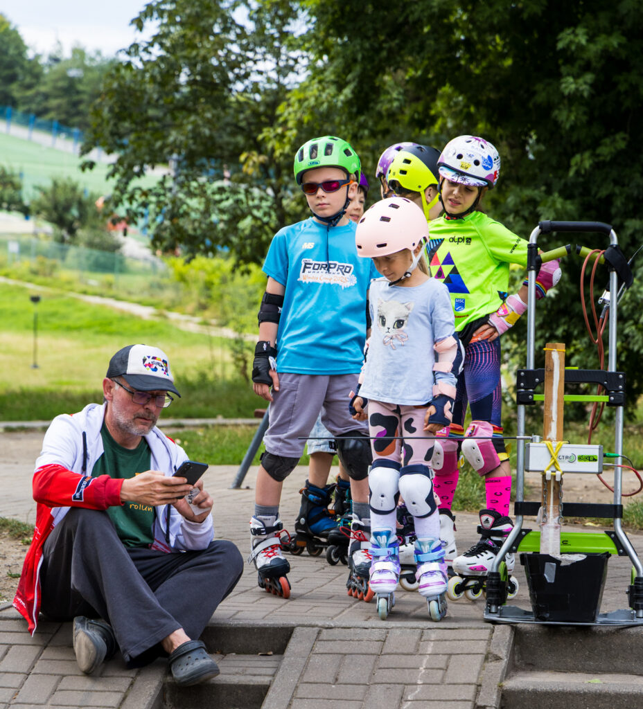 W drugiej części warsztatów skupiamy się na konserwacji – uczymy, jak czyścić i pielęgnować rolki, sprawdzać stan kółek, łożysk i elementów mocujących. Wszystko odbywa się w formie angażującej zabawy, pod okiem instruktorów, którzy tłumaczą, pokazują i odpowiadają na pytania.
