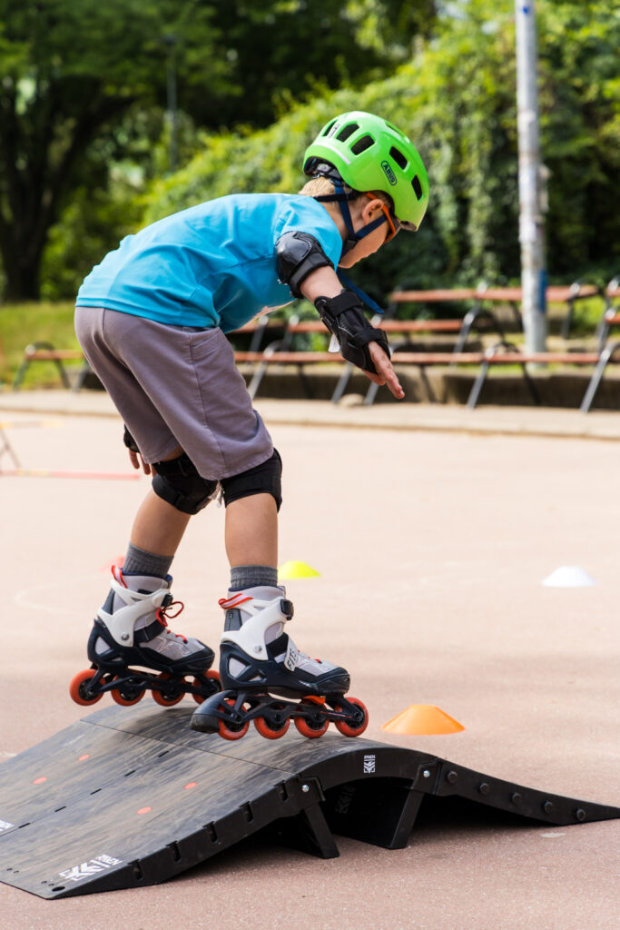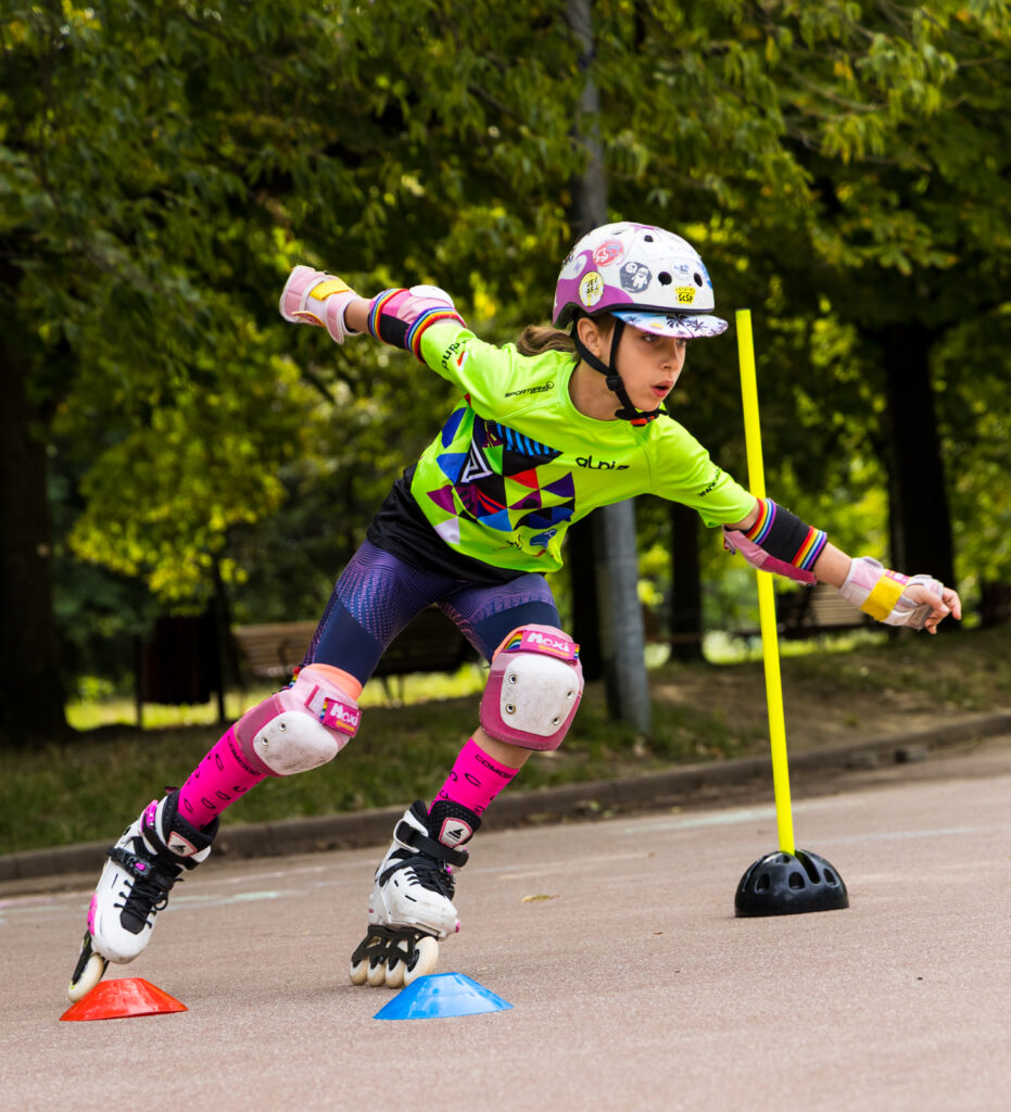 Podczas zajęć omawiamy różne typy rolek – od rekreacyjnych, przez slalomowe i agresywne, aż po szybkie rolki wyścigowe. Dzieci dowiadują się, czym się różnią, do czego służą i jak dobrać odpowiedni model do własnych umiejętności i stylu jazdy.