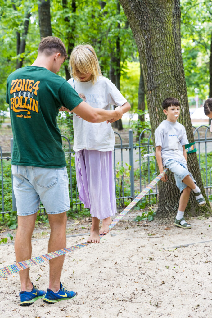 Ćwiczenia motoryczne na świeżym powietrzu, w tym slackline i gry ruchowe