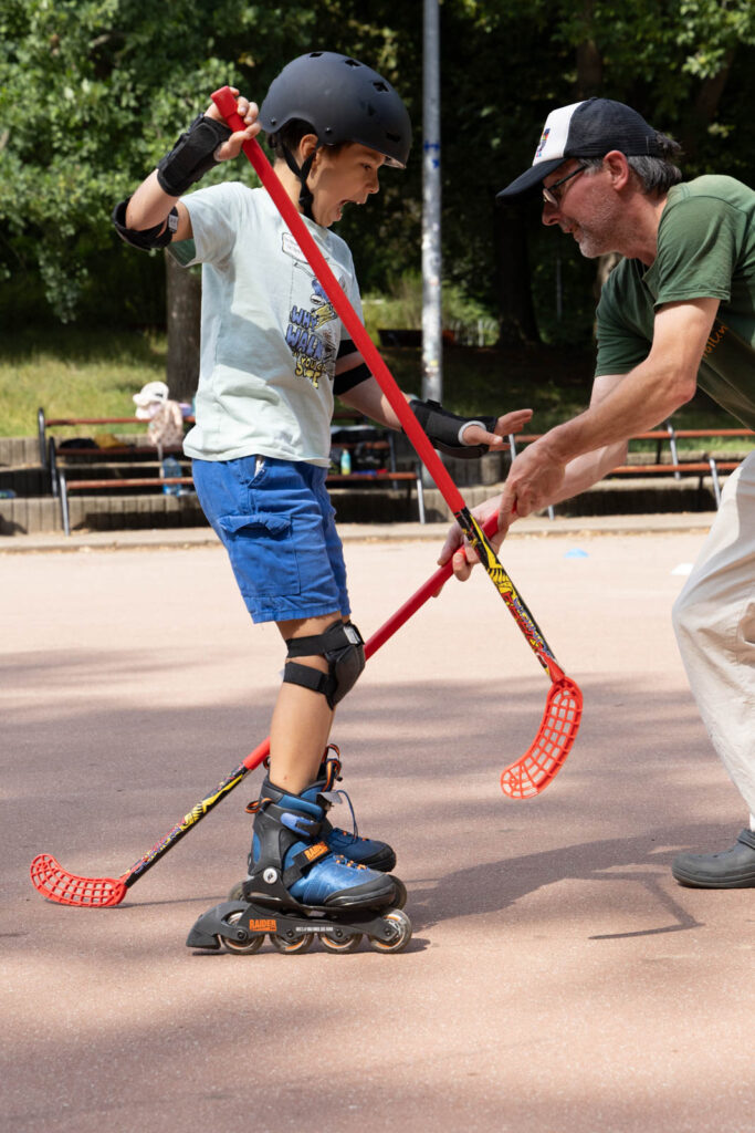 Zabawy techniczne – jazda w parach, jazda synchroniczna, mini-hokej na rolkach.